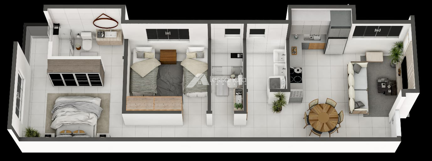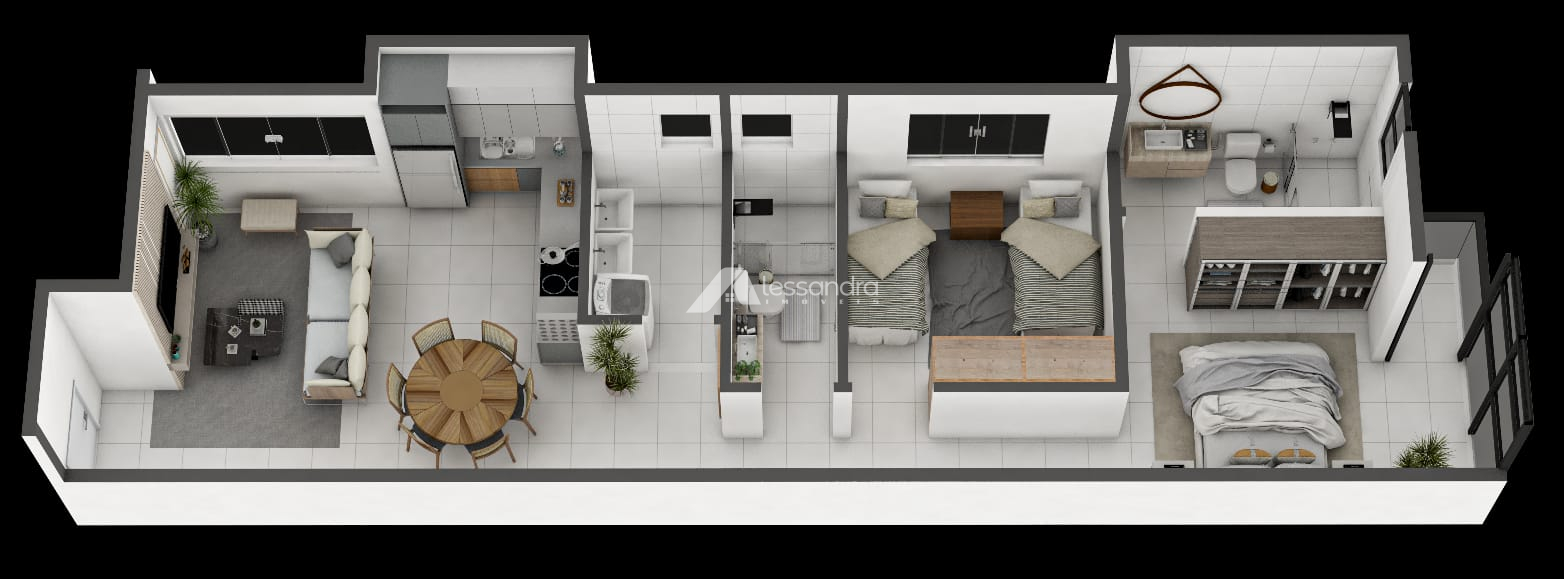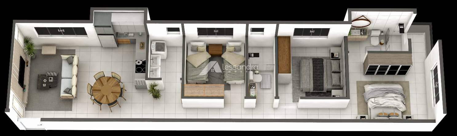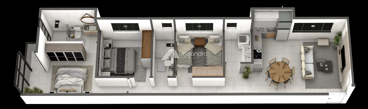 2 e 3 quartos, sendo 1 suíte